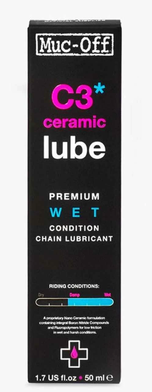 Le secret de la lubrification de la chaîne C3 Ceramic Wet est le revêtement céramique unique qui offre une durabilité incroyable et des performances à long terme sur toutes les chaînesad . La formulation innovante de notre huile pour chaîne utilise également du nitrure de bore pour assurer une friction extrêmement faible pour une efficacité ultime de la chaîne d’entraînement, des performances élevées et une grande durabilité. Les propriétés de résistance à l’eau de Muc-Off C3 Ceramic Wet Chain Lubricant signifient également que votre chaîne de transmission fonctionnera parfaitement dans les conditions les plus difficiles.